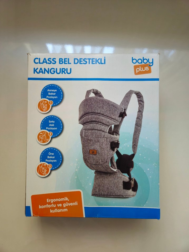siyah renkli ergonomik bebek kangurusu, bel destekli olup konforlu ve güvenli kullanım sağlar. Farklı taşıma pozisyonları mevcuttur. kisa sureli kullandi yeni gibi.