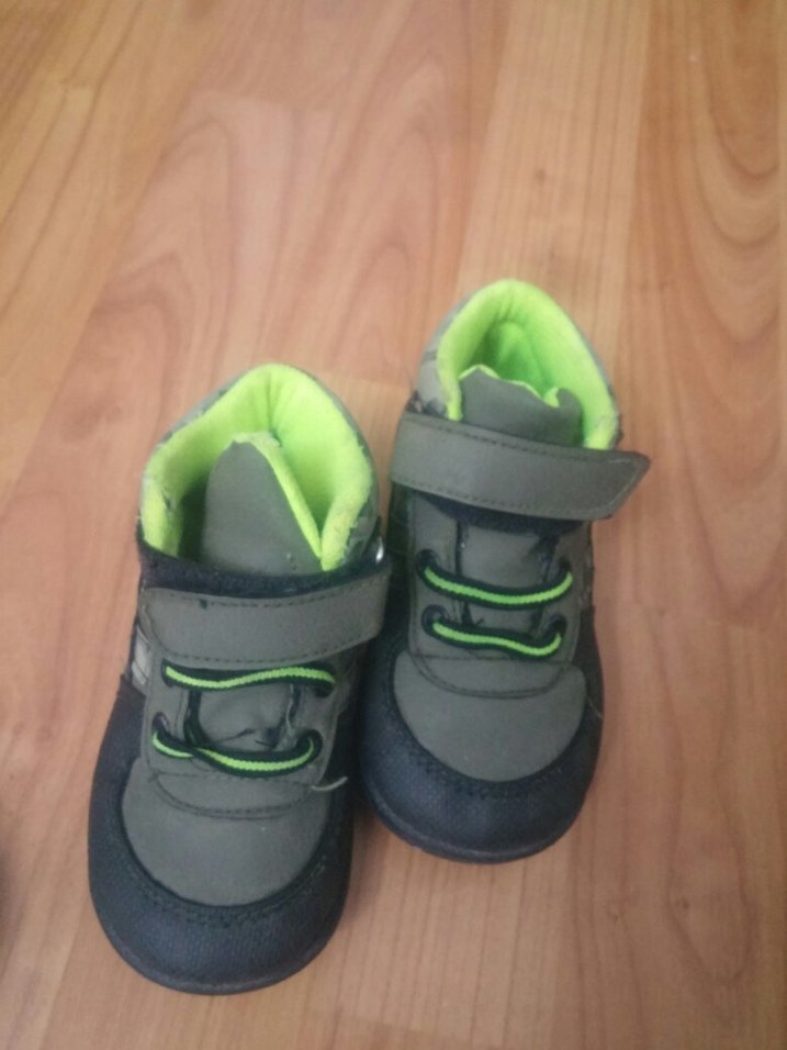 Gri renkli, kauçuk tabanlı erkek çocuk ayakkabısı, Velcro bantlı ve yumuşak iç astarlı rahat tasarım.