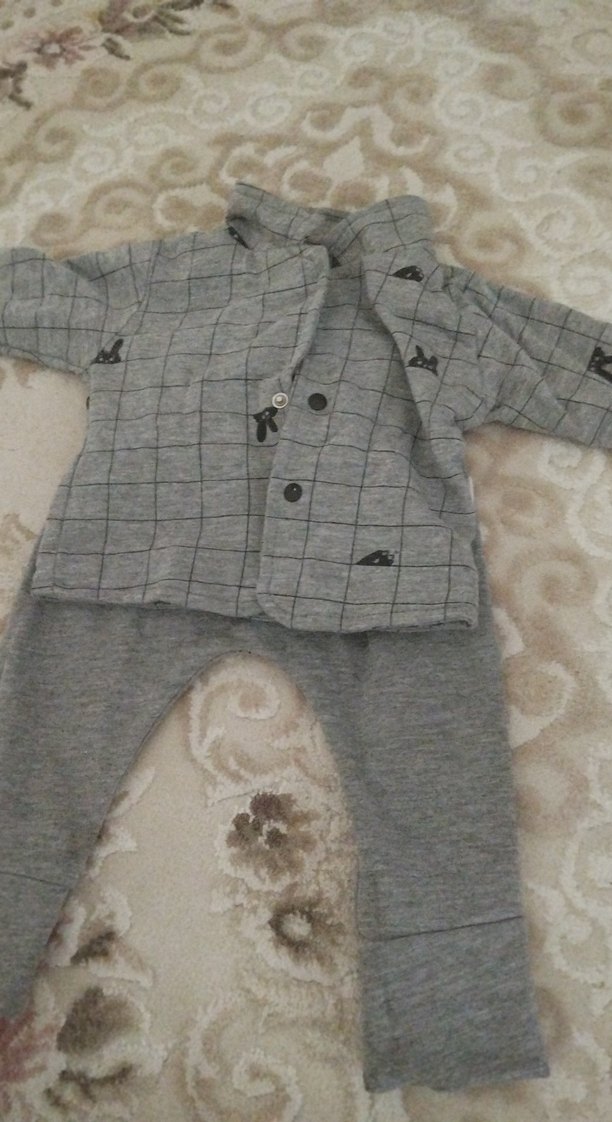 Gri Erkek Bebek Düğmeli Takım