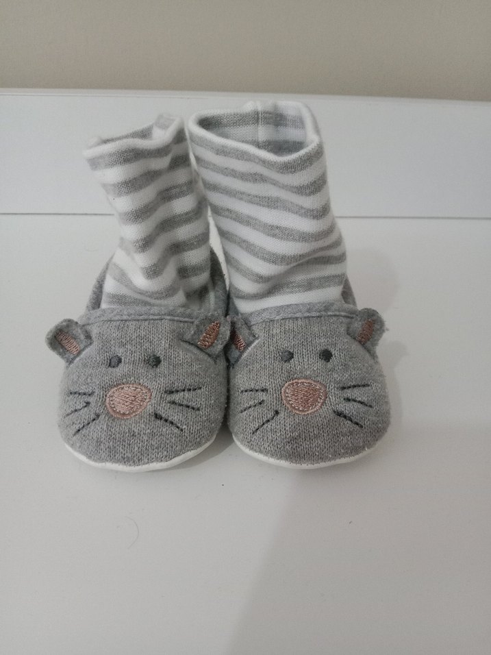 Gri ev botu, zebra desenli ve sevimli hayvan yüzü detaylı, yumuşak ve sıcak kumaştan üretilmiştir.