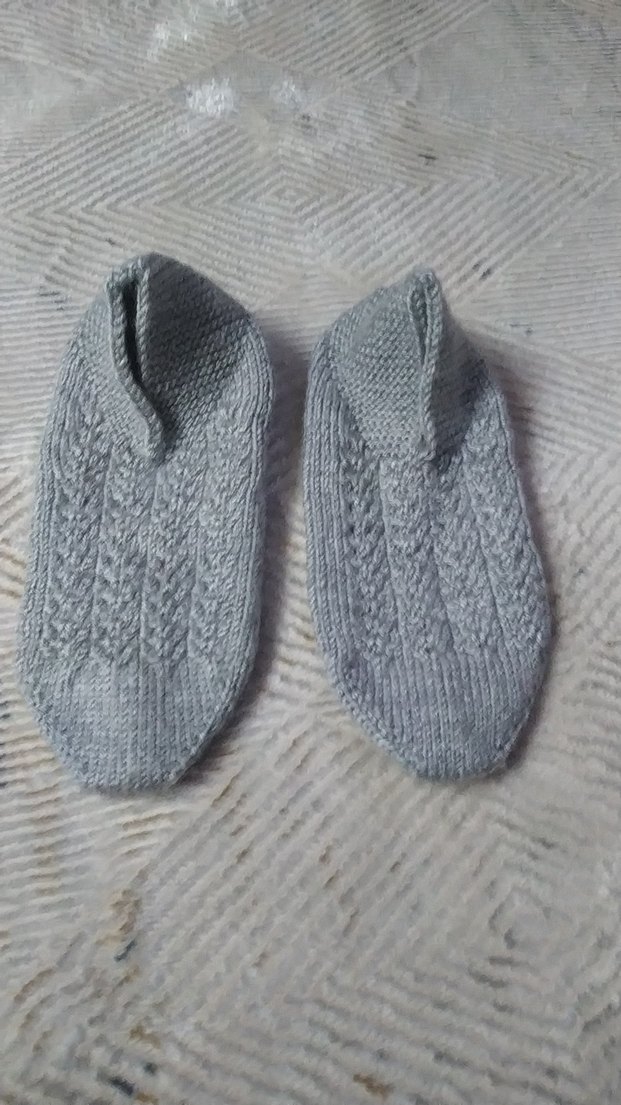 Gri renkli, örgü erkek bebek patikleri, yumuşak triko malzemeden yapılmış, sade ve desensiz tasarıma sahiptir.
