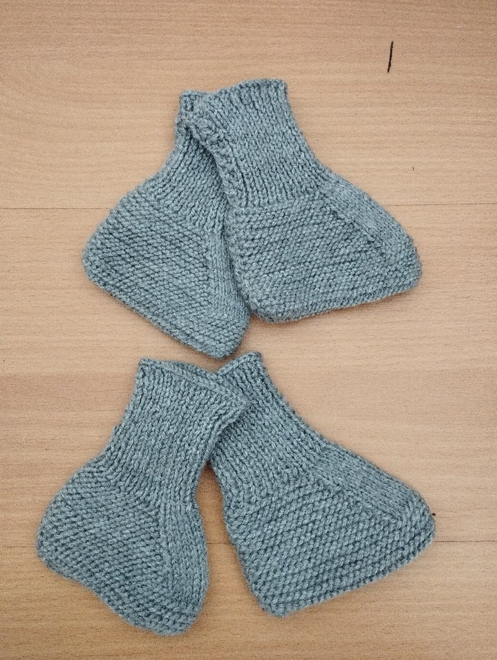 Gri renkli, örgü kumaştan yapılmış erkek bebek patikleri, sade ve desensiz tasarıma sahiptir.