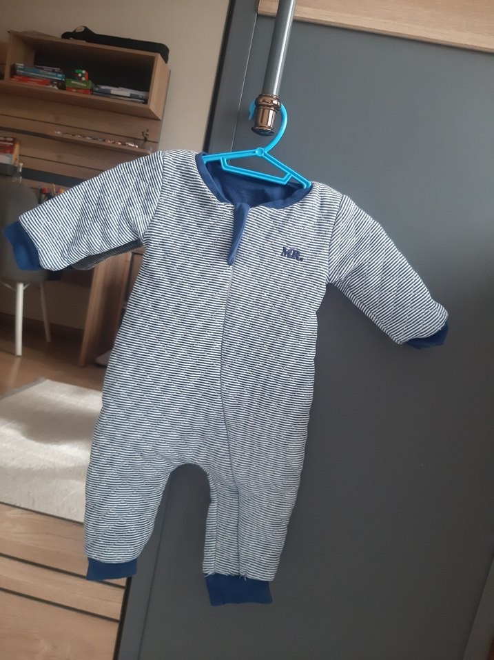 Gri renkli erkek bebek tulumu, örgü dokusu ve yumuşak, sıcak kumaş ile tasarlanmıştır. Uzun kollu ve fermuarlı, sokak stiline uygundur.