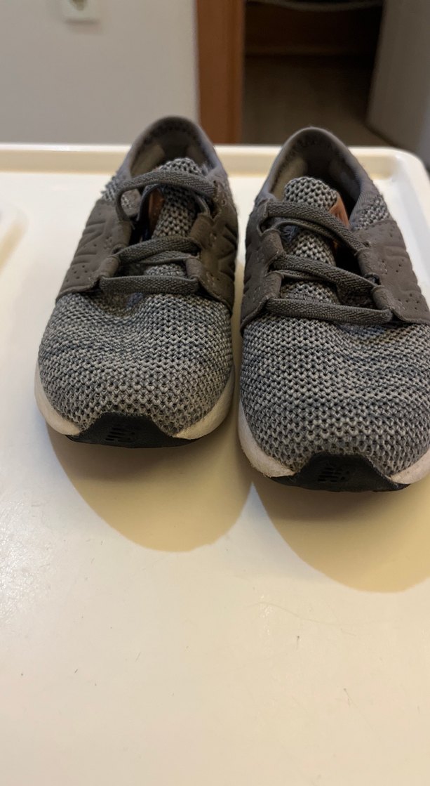 Gri renkli, kauçuk tabanlı erkek bebek spor ayakkabısı, Velcro bantlı ve blok topuklu, nefes alabilen örgü üst yüzeye sahip.23.5 numara