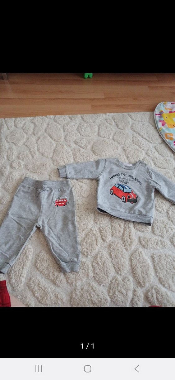Gri Erkek Bebek Triko Takım Araba Baskılı