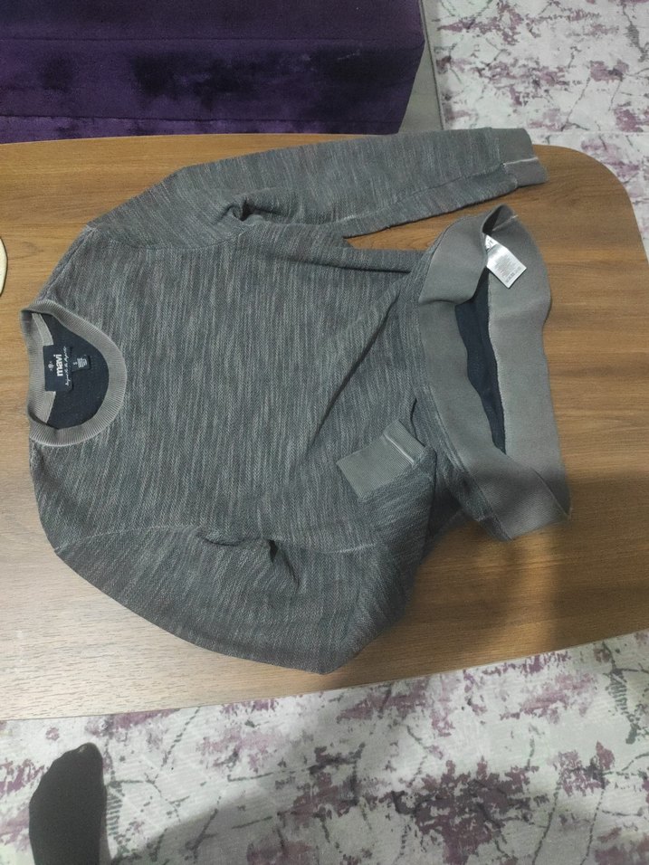 Gri renkli, bel detaylı, uzun kollu ve bisiklet yaka erkek sweatshirtü. Sentetik yumuşak kumaştan, günlük sokak stiline uygun.