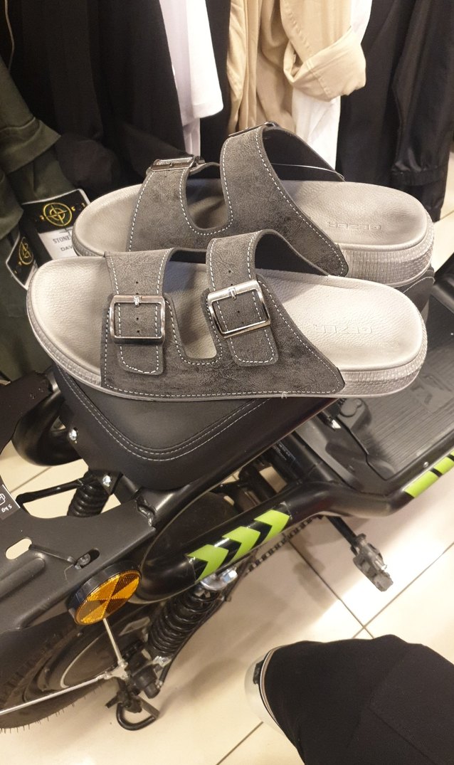 Çift tokalı, baskılı desenli gri erkek biker tarzı sandalet, lastik tabanlı, sokak stiline uygun. TEK FİYAT YAPTIK 499 TL SATIYORUM MAĞAZADA BUNU.