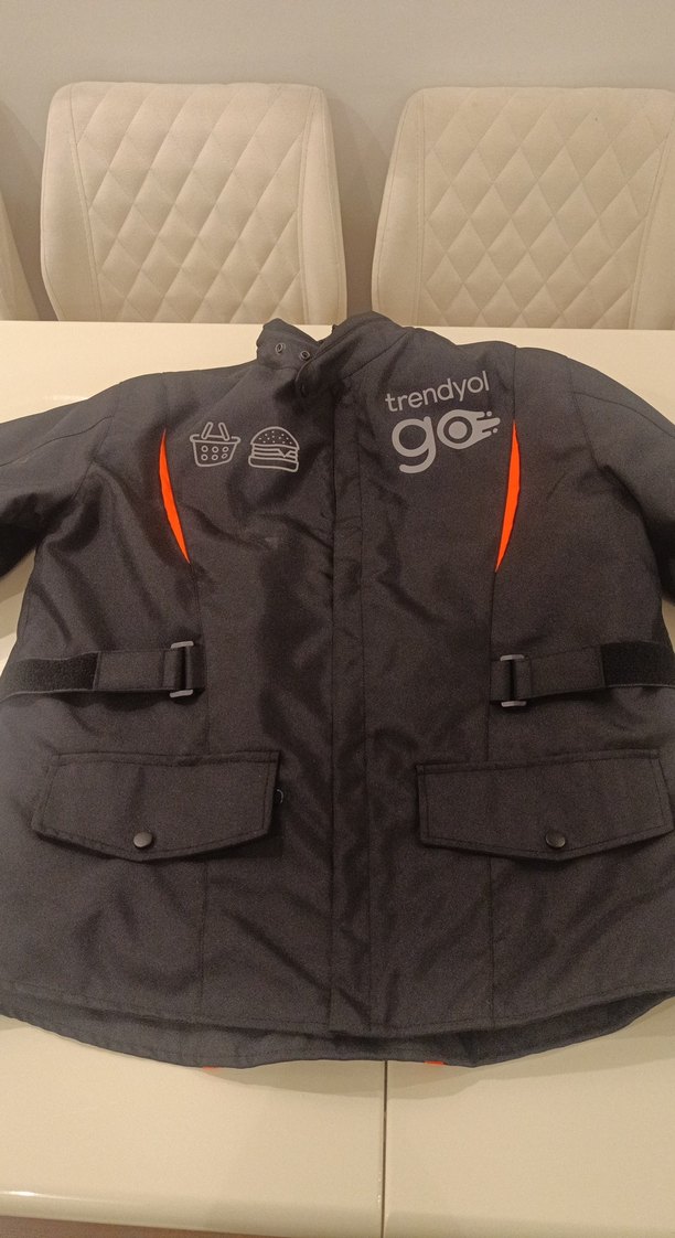 Gri renkte, biker tarzı, uzun kollu, bisiklet yaka ve cırt cırtlı kapamalı, baskılı detaylara sahip, normal boyda erkek mont. Dış mekan ve sokak stili için uygundur.