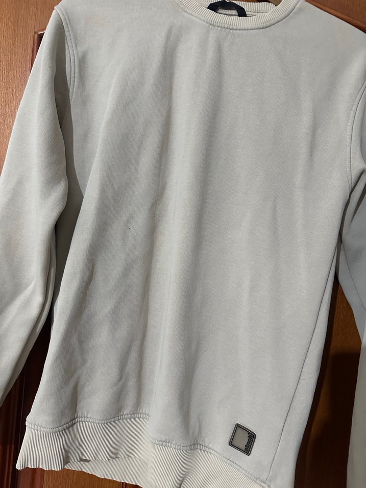Bisiklet yaka ve uzun kollu, keten kumaştan yapılmış bol kesim gri erkek sweatshirt. Günlük kullanım için rahat ve sade tarzda. Boyu 70 cm omuz 45 cm kol boyu 62 cm