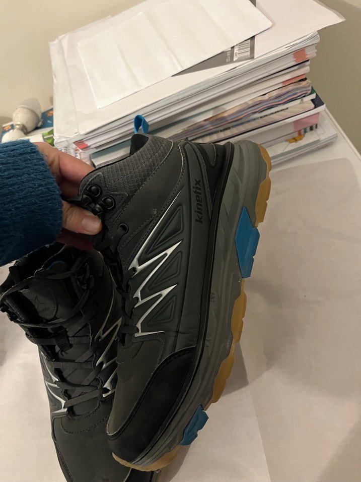 Gri baskılı tasarıma sahip, velcro bantlı, kauçuk tabanlı erkek spor outdoor ayakkabısı. Sokak modasına uygun şık ve rahat.