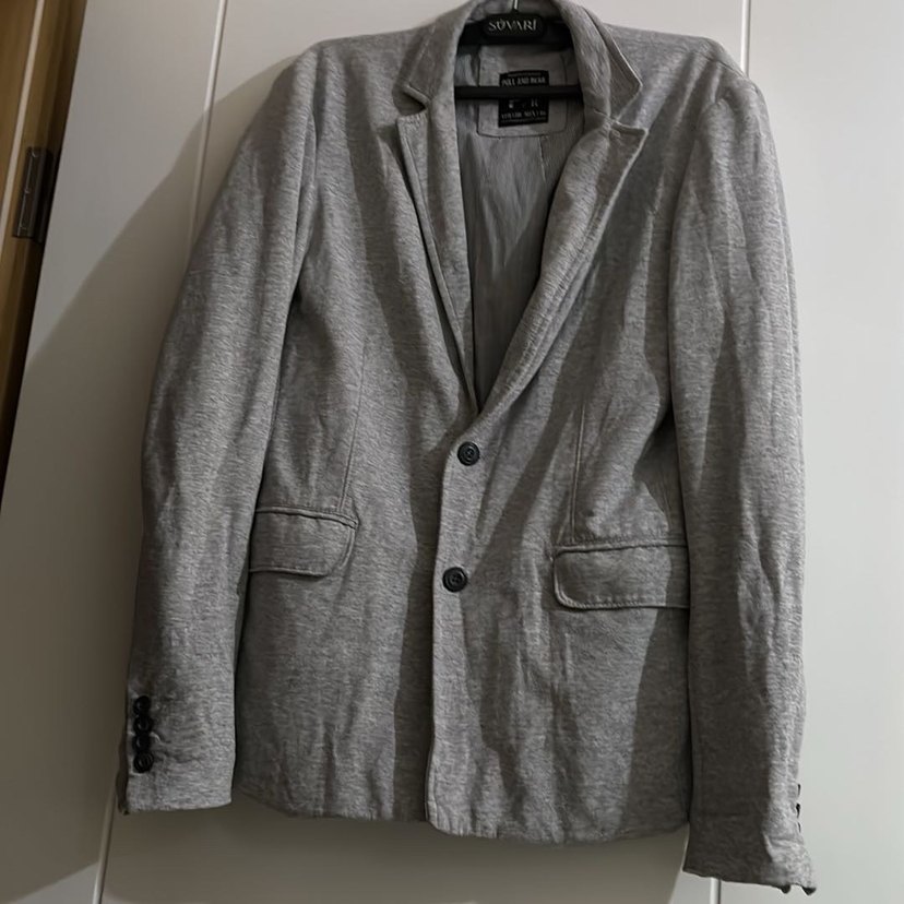 Gri renkte, keten kumaştan yapılmış, çift düğmeli, kesik yakalı, uzun kollu erkek ceketi. Normal midi boyunda, düzenli kesim ve desensiz tasarıma sahiptir.