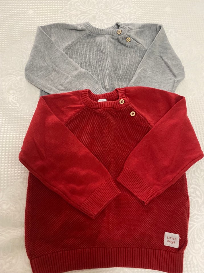 Gri renkli ve kırmızı düğmeli bisiklet yaka ve uzun kollu erkek çocuk örgü kazak. Rahat, bol kesim ve sade tasarıma sahiptir. Bir kac kez gıyılmıstır ve hiçbir yerinde sorun yoktur