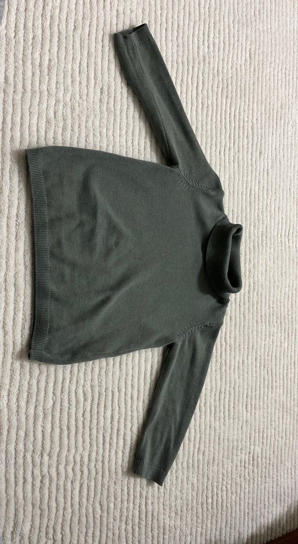 Gri renk, yün kumaştan örülmüş, boğazlı ve uzun kollu, vücuda oturan triko kazak. Normal boyda ve sade tasarımıyla dış mekan kullanımı için uygundur . 12-18 beden