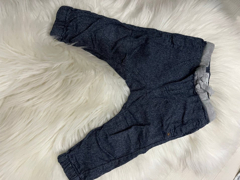 Gri renkli, düğmeli, bol kesim erkek çocuk denim pantolon. Sade ve temel tarzda, rahat ve günlük kullanıma uygun.