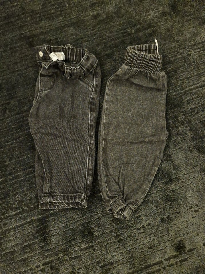 Gri renkte, bol kesim, kemerli ve lastikli paçalı erkek çocuk denim pantolon, rahat ve şık sokak stili için uygundur.