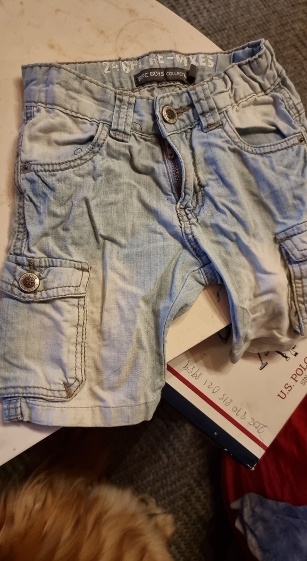 Gri renkli, bol kesim erkek çocuk denim şort, tokalı cepleri ve sokak stiliyle rahat ve şık görünüme uygundur.