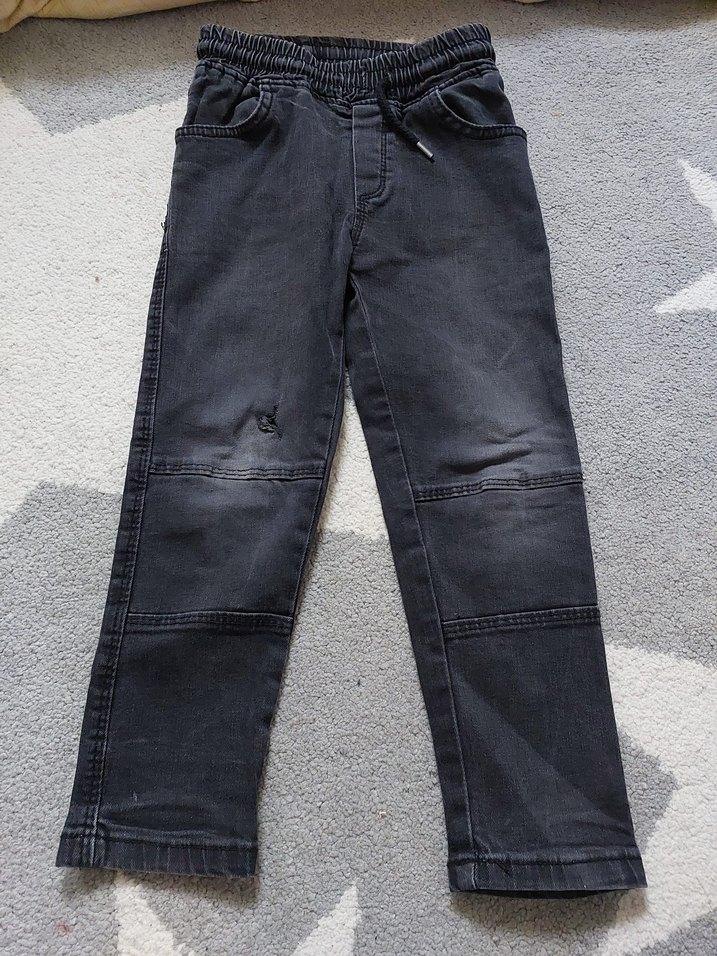 Gri renkte, bol kesim, kot kumaştan erkek çocuk pantolonu. Bel kısmında tokalı detay ve normcore tarzıyla rahat bir model. boy 63 cm bel 26 cm likrali ( diz için arma alıp yapıştirma yapilabilir sadece deforme o kısımdadır temiz üründür)