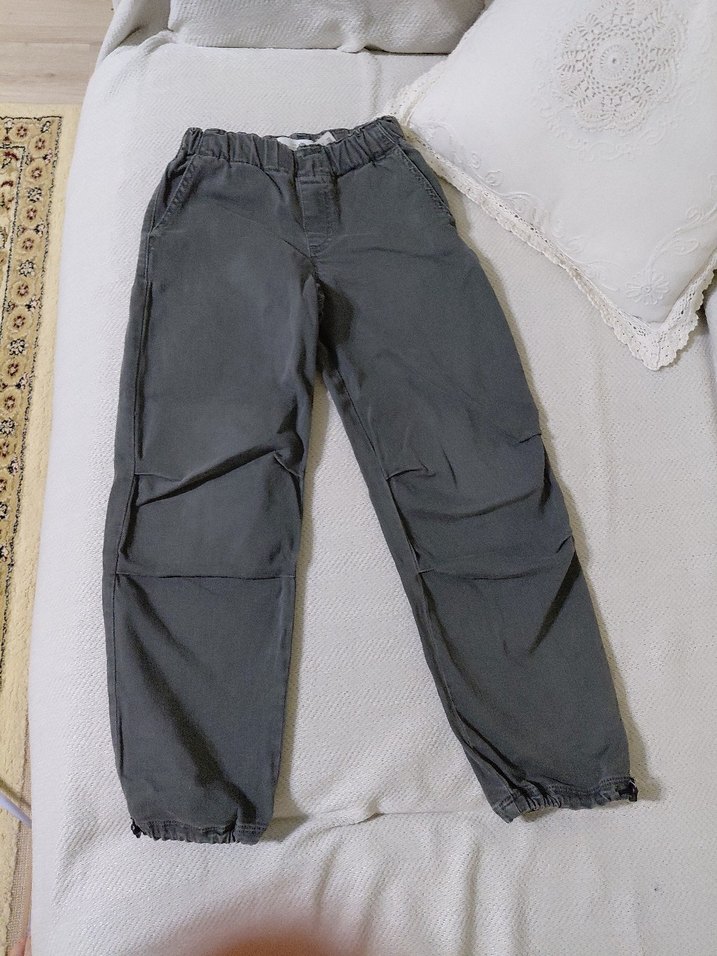 Gri renkli, bol kesim erkek çocuk kot pantolon. Elastik bel ve paçalar rahatlık sağlar, desensiz ve sade tasarıma sahiptir. Az kullanıldı.