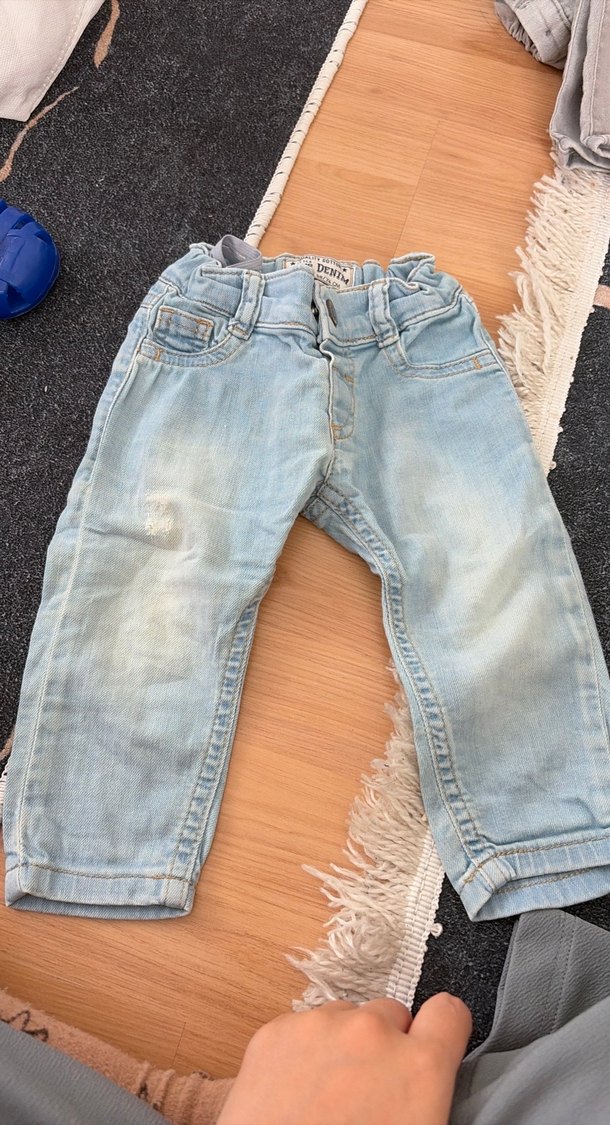 Gri renkli, bol kesim kot pantolon, tokalı bel detayıyla rahat ve sade bir tarz sunar. Desensiz, yumuşak dokulu kumaş içerir.