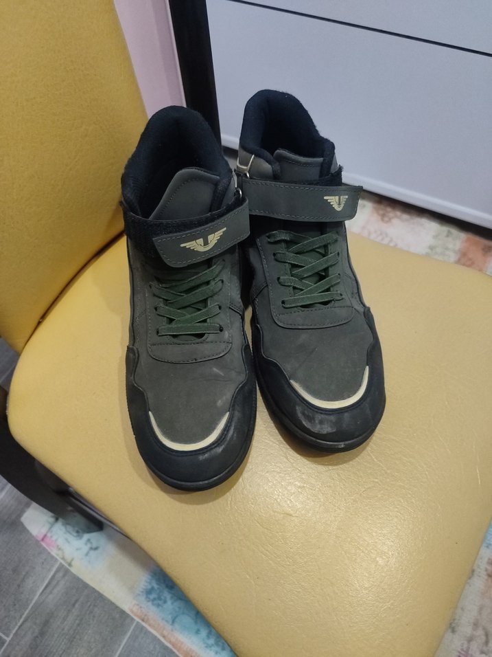 haki renkli, kaymaz cırt cırtlı, kauçuk malzemeden yapılmış erkek çocuk spor botları. Sokak modasına uygun, desen içermeyen tasarım.