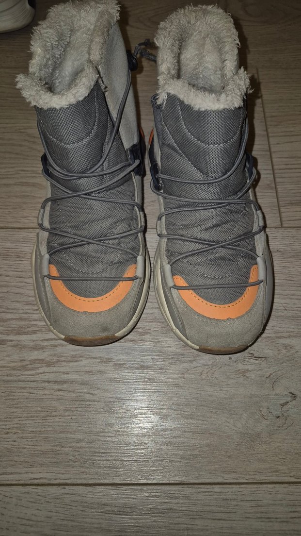 Gri renkli, içi yumuşak astarlı, Velcro bantlı erkek çocuk botu. Kauçuk tabanlı, sokak stiline uygun.