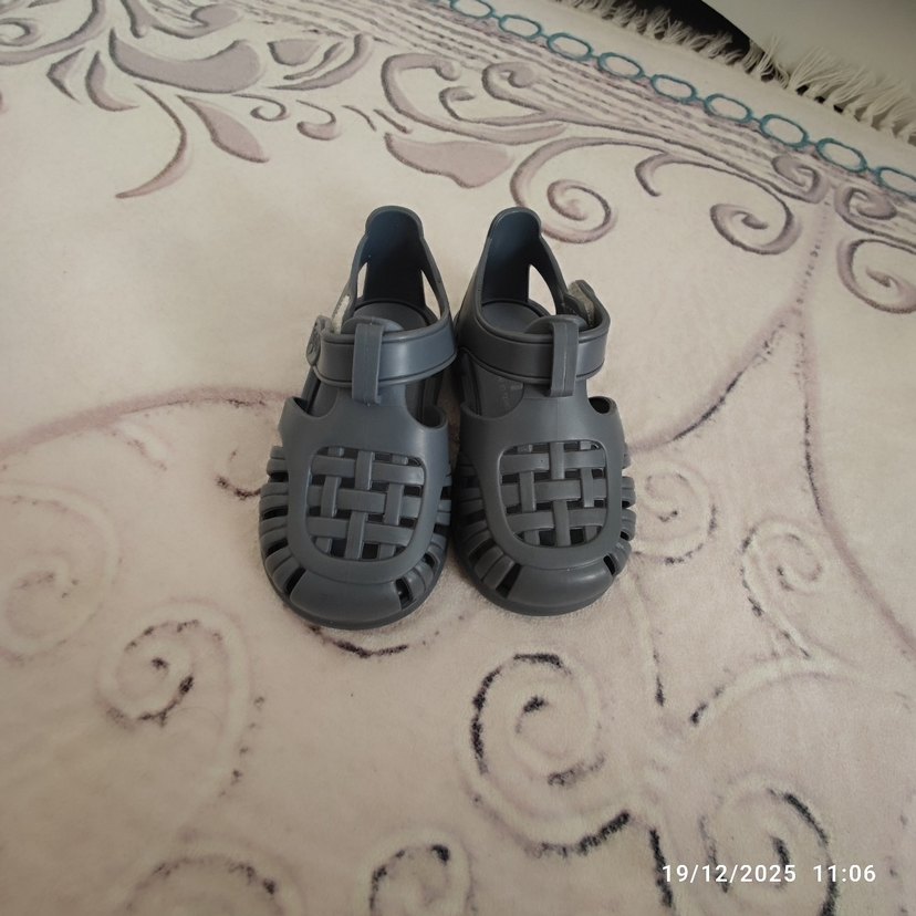 Gri renkte, kauçuk malzemeden yapılmış, tokalı erkek çocuk terlikleri sade ve desensizdir. Sokak stili için uygundur.