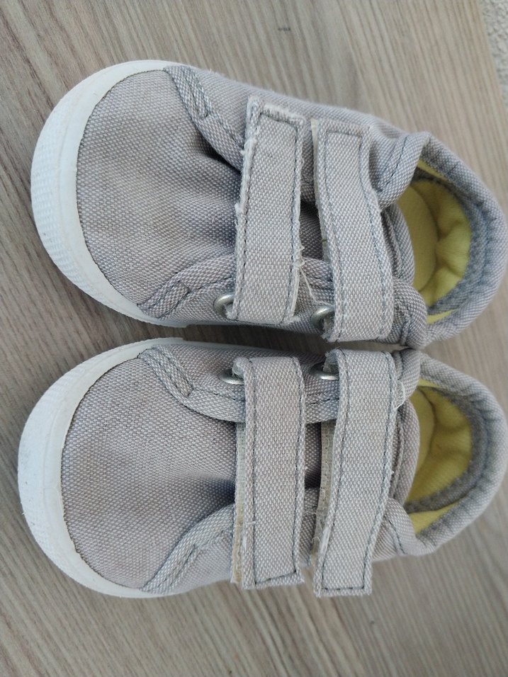 Gri renkli, cırt cırtlı kapama ve kauçuk tabanlı erkek çocuk spor ayakkabısı, sade ve deseniz tasarımla sokak stili için uygundur.