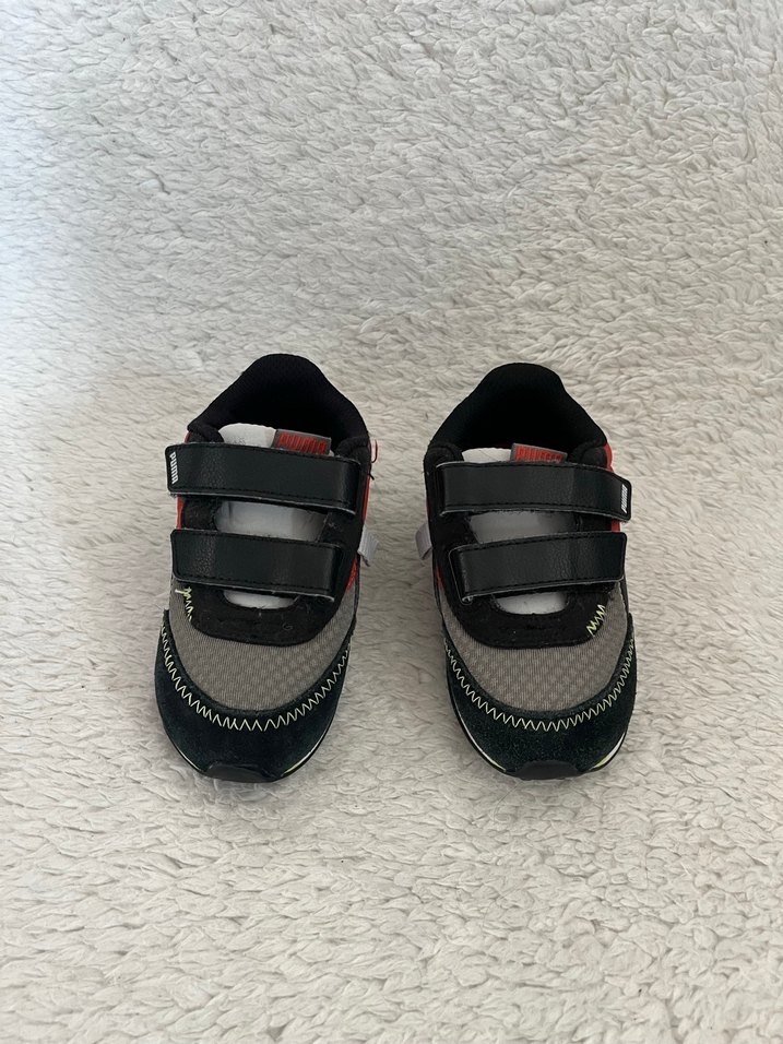 Gri renkte, cırt cırtlı bantlara ve kauçuk tabana sahip, kareli desenli erkek çocuk spor ayakkabısı.