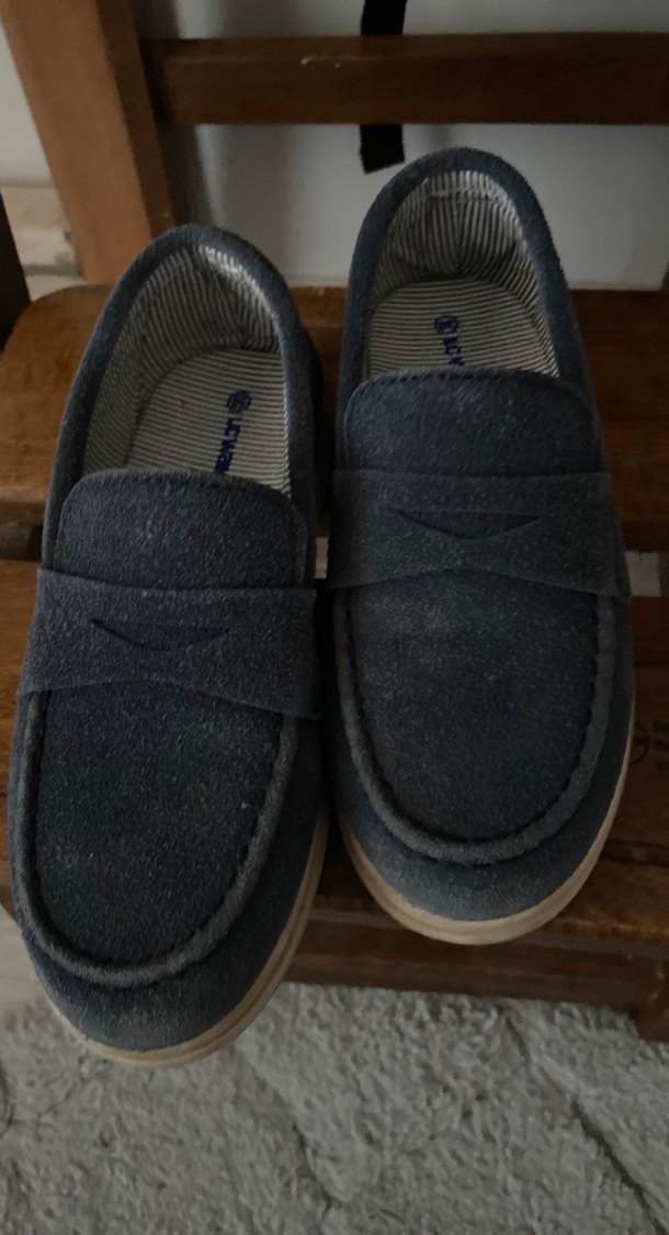 Gri renkli, cırt cırtlı ve kauçuk tabanlı erkek çocuk loafer ayakkabısı, sade ve rahat bir tasarıma sahiptir.