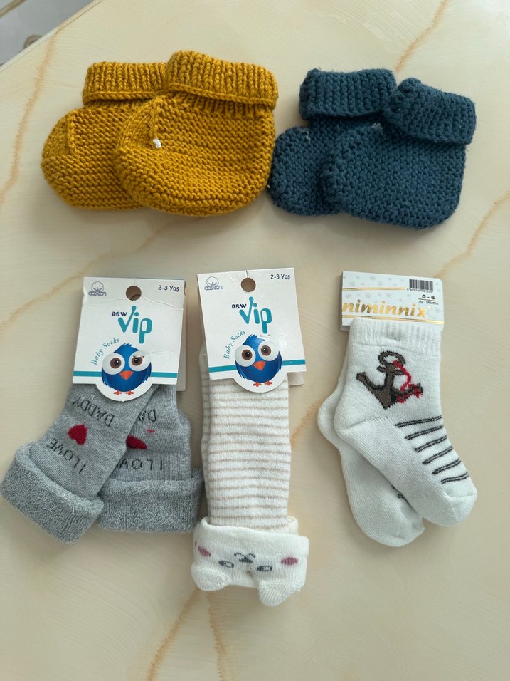 Yumuşak kumaştan yapılmış, çizgili ve çapa işlemeli detaylara sahip gri erkek çocuk çoraplarından oluşan 3'lü pakettir.