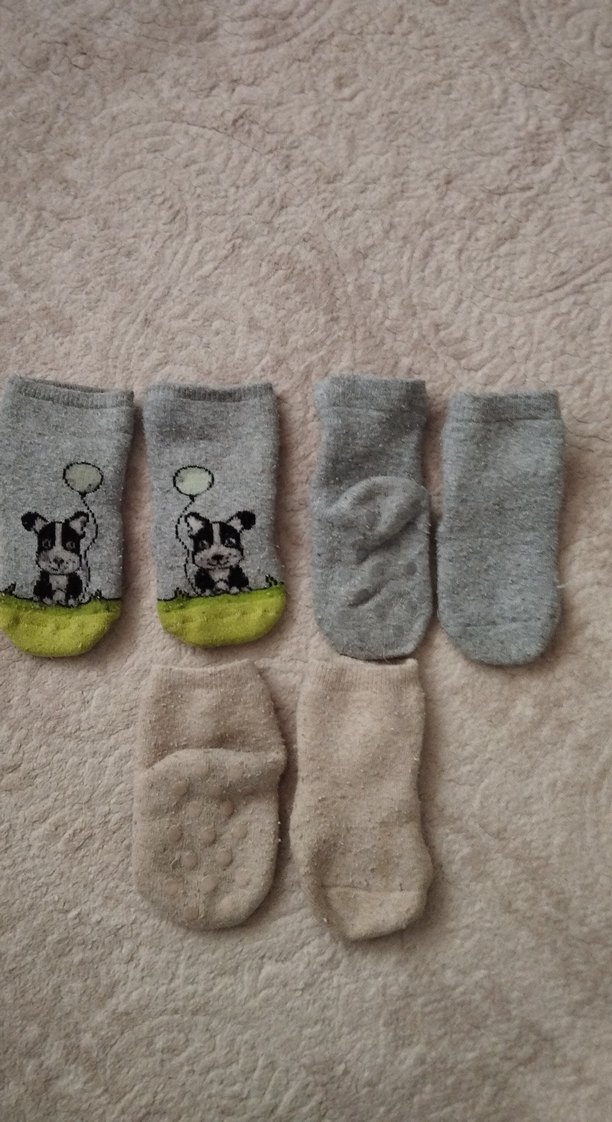 Gri tonlarda, iki çift köpek ve balon desenli olmak üzere dört çift erkek çocuk çorabı. Yumuşak ve rahat yapıda.