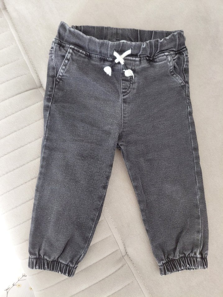 Gri renkte, elastik bel ve paça uçlarına sahip erkek çocuk denim jogger pantolon, rahat ve salaş bir sokak tarzı sunar. Kışlık ve kalın kumaşı vardır.