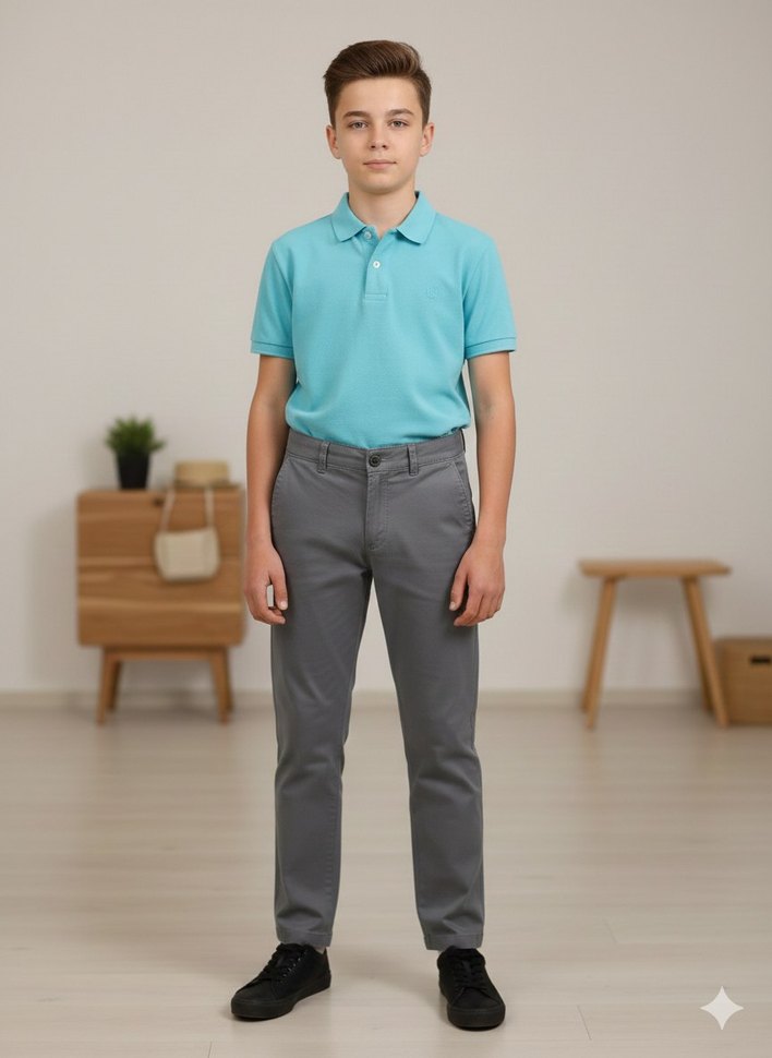 Gri renkte, düz desenli ve regular fit kesime sahip erkek çocuk denim pantolon, rahat ve şık bir görünüm sunar.
