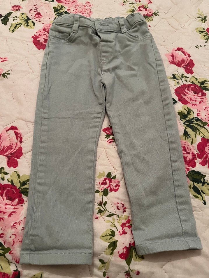 Düğmeli, düz desensiz gri erkek çocuk denim pantolon, normal kesim ve sade tarza sahiptir.