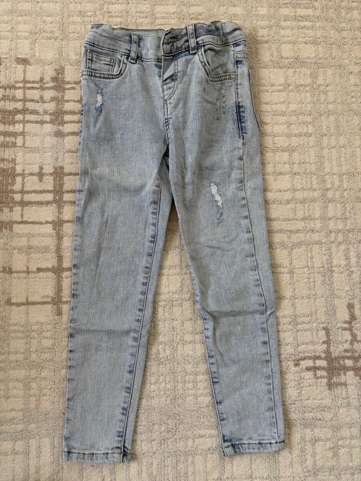 Erkek çocuklar için regular fit kesimde, tokalı bel bantlı, desen içermeyen mavi-gri tonlarında denim pantolon.