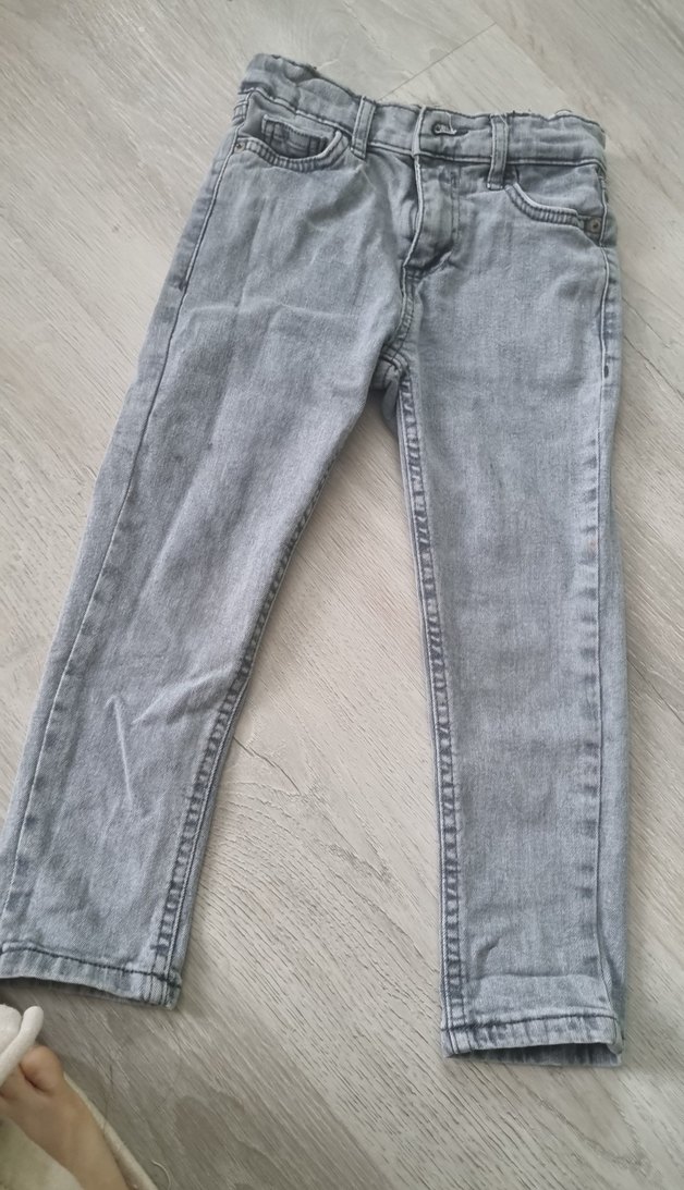 Gri renkli, düğmeli ve normal kesim erkek çocuk denim pantolon. Rahat ve sade tasarımıyla günlük kullanıma uygundur.