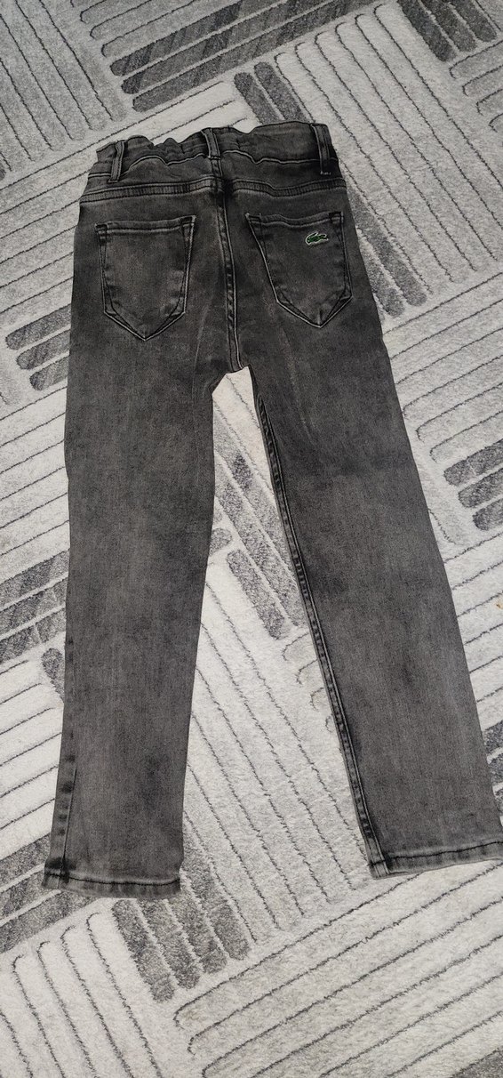 Gri renkli, regular fit kesim erkek çocuk denim pantolon. Street wear tarzında, bağcıklı detaylı ve desensiz.