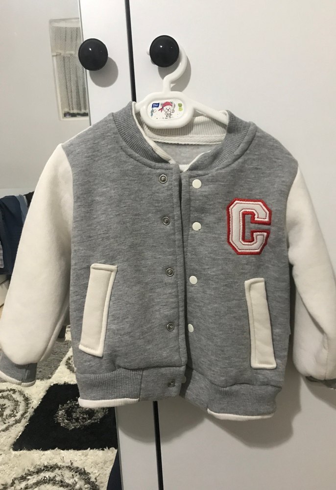 Gri gövdeli, krem renk kollu, düğmeli ve baskılı detaylı, salaş kesim erkek çocuk sweatshirtü. Sokak stili ve rahatlığı bir arada sunar.