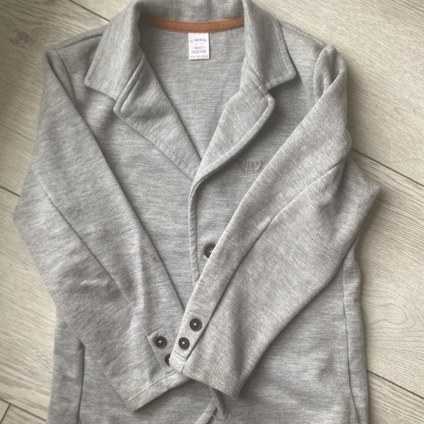 Gri renkte, düğmeli ve kesik yaka detaylı erkek çocuk ceketi. Rahat kalıp ve yumuşak, sıcak tutan kumaştan üretilmiştir. 2. Resimde lekesi vardır çıkarılması için hiç uğraşılmadı belki siz denerseniz çıkar