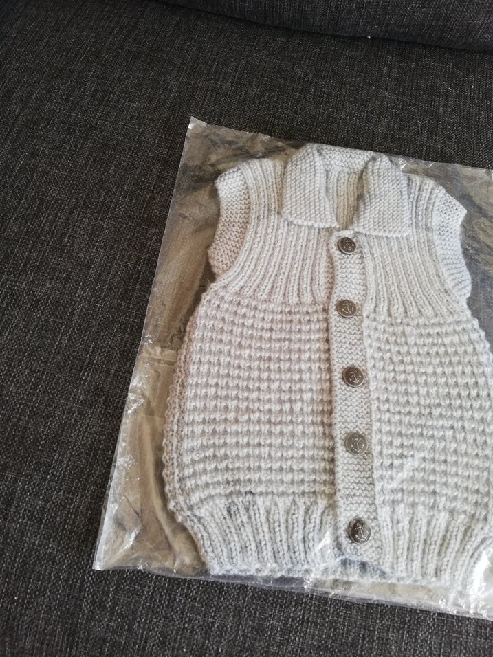 Gri renkte, düğmeli, elörgüsu dokulu, erkek çocuk için yelek