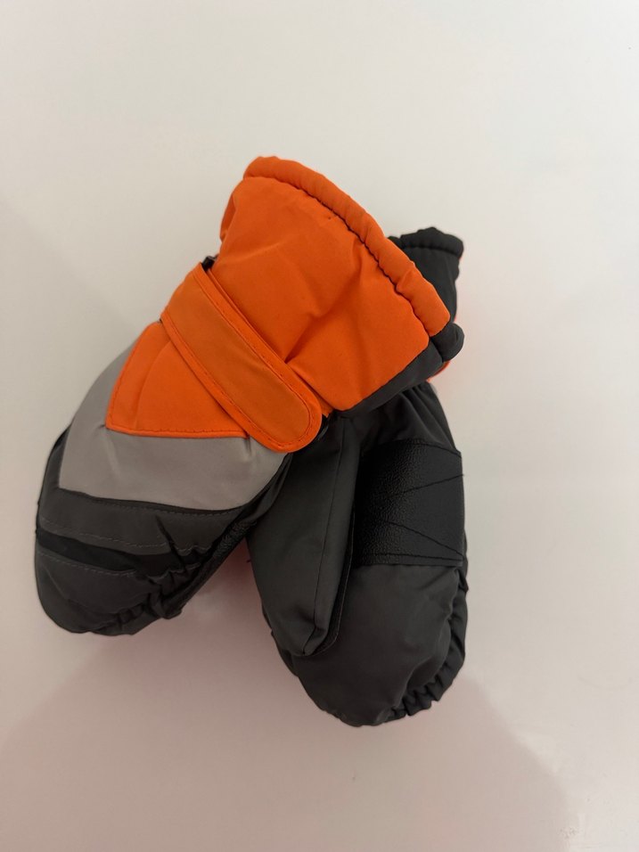 Gri renkli, yumuşak ve sıcak tutan erkek çocuk eldiveni, Velcro kayışlı, düz ve desensiz tasarıma sahiptir.