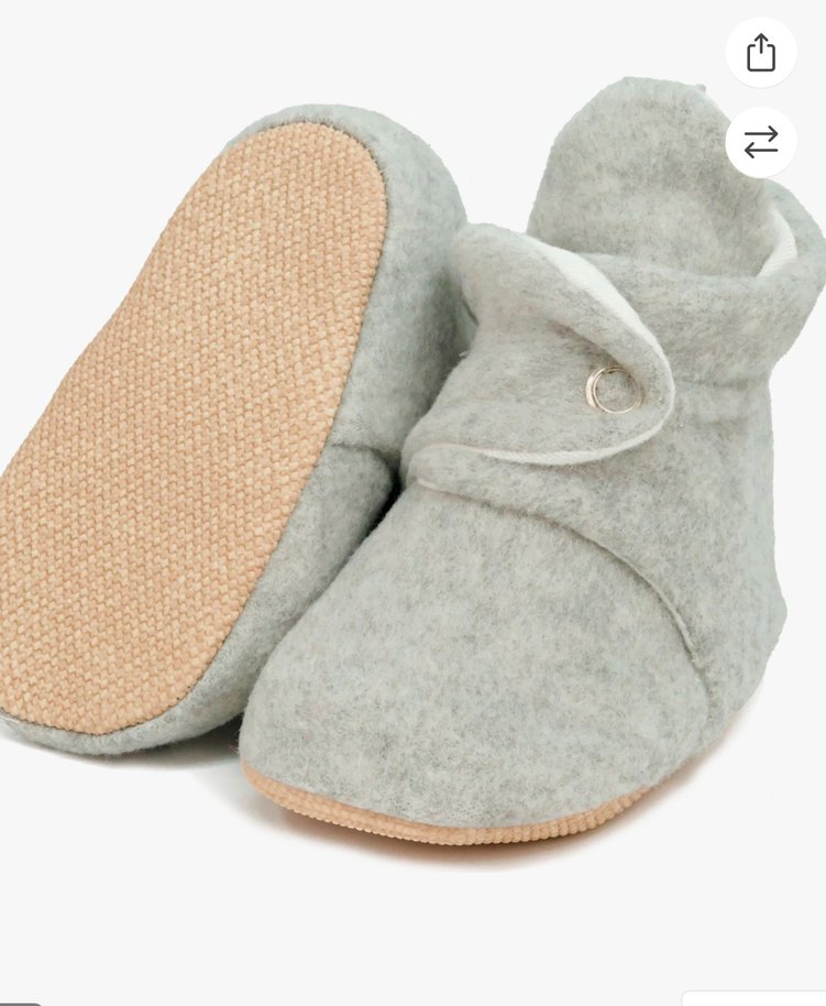 Gri renkte, yumuşak ve sıcak kumaştan yapılmış erkek çocuk terliği, kolay giyim için velcro bantlı sade tasarıma sahiptir.