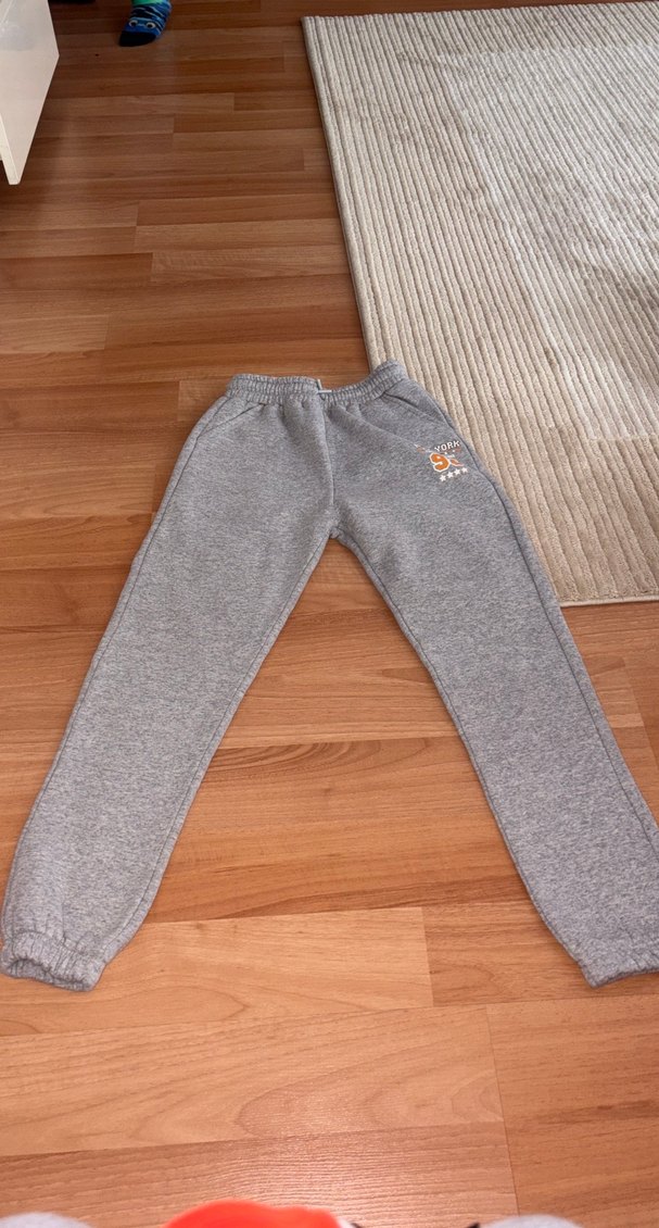 Gri renk, rahat kesim, elastik bel ve bilek detaylı, yumuşak ve sıcak kumaştan çocuk eşofman altı. Desensiz, küçük baskılı logo ile sportif ve günlük kullanıma uygun. Az kullanıldığı için satıyorum Boy:90cm Bel:33cm Basen:46cm