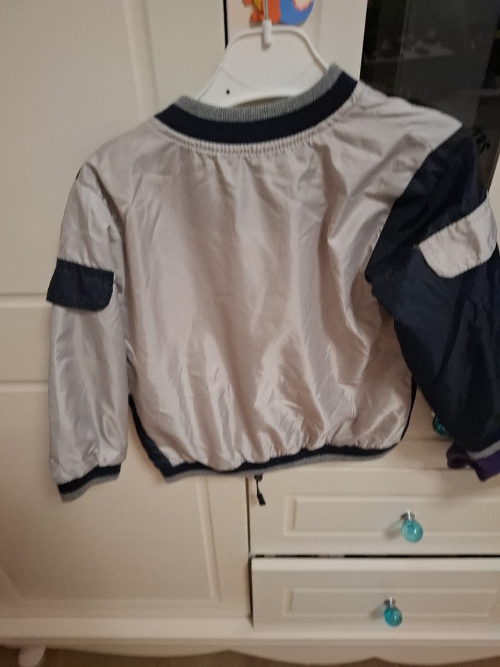 Gri renkli, bol kesim erkek çocuk ceketi, bisiklet yaka ve fermuarlı ön kısmıyla dikkat çeker. Sentetik kumaştan üretilmiş, sokak stiline uygundur.