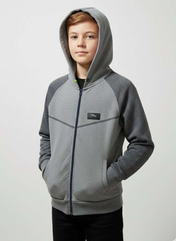 Gri Erkek Çocuk Fermuarlı Kapüşonlu Ceket