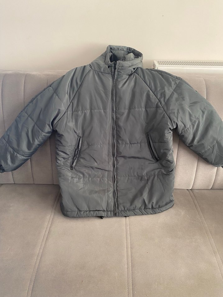 Gri renkli, fermuarlı cepleri ve yüksek yakası olan erkek çocuk montu. Yumuşak ve sıcak kumaştan, sokak stiline uygun kesimle üretilmiştir.