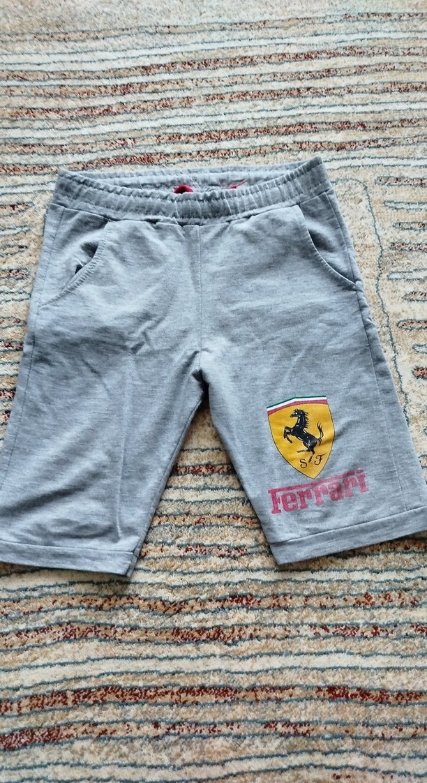 Gri renk, bol kesim erkek çocuk şortu, yumuşak dokulu ve fermuarlı. Önünde 'Ferraci' baskısı ve baskılı desenler bulunur.