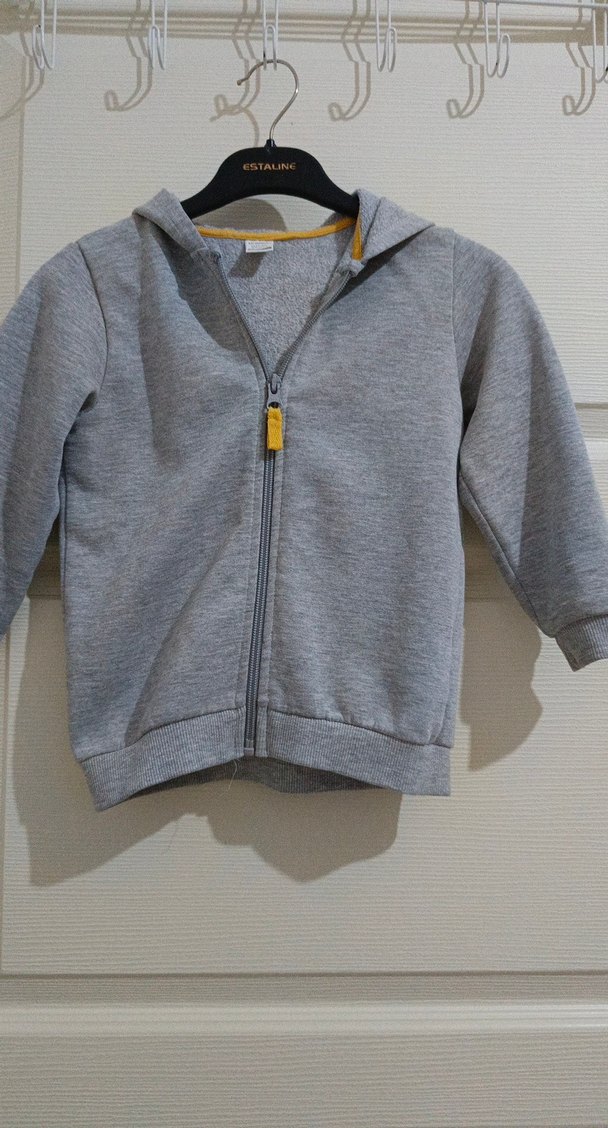 Gri renkli, kapüşonlu ve fermuarlı erkek çocuk sweatshirtü, yumuşak ve sıcak kumaştan, uzun kollu ve regular fit kesimlidir.