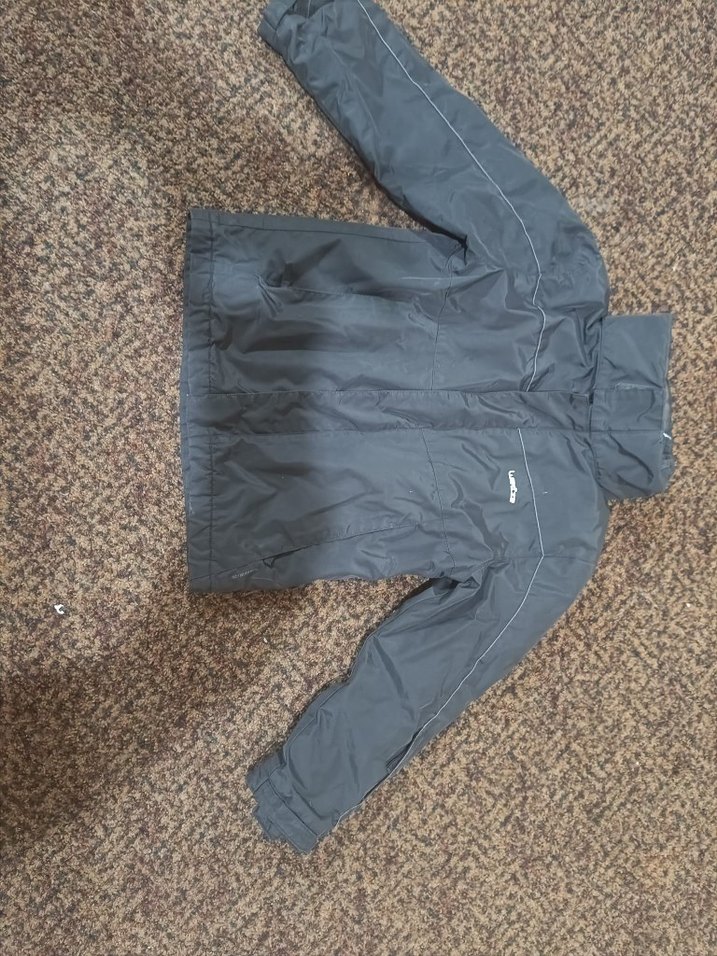 Gri renkli erkek çocuk montu, yüksek yakalı ve fermuarlı. Bol kesim ve sade tasarıma sahip, yumuşak ve sıcak kumaştan üretilmiştir.