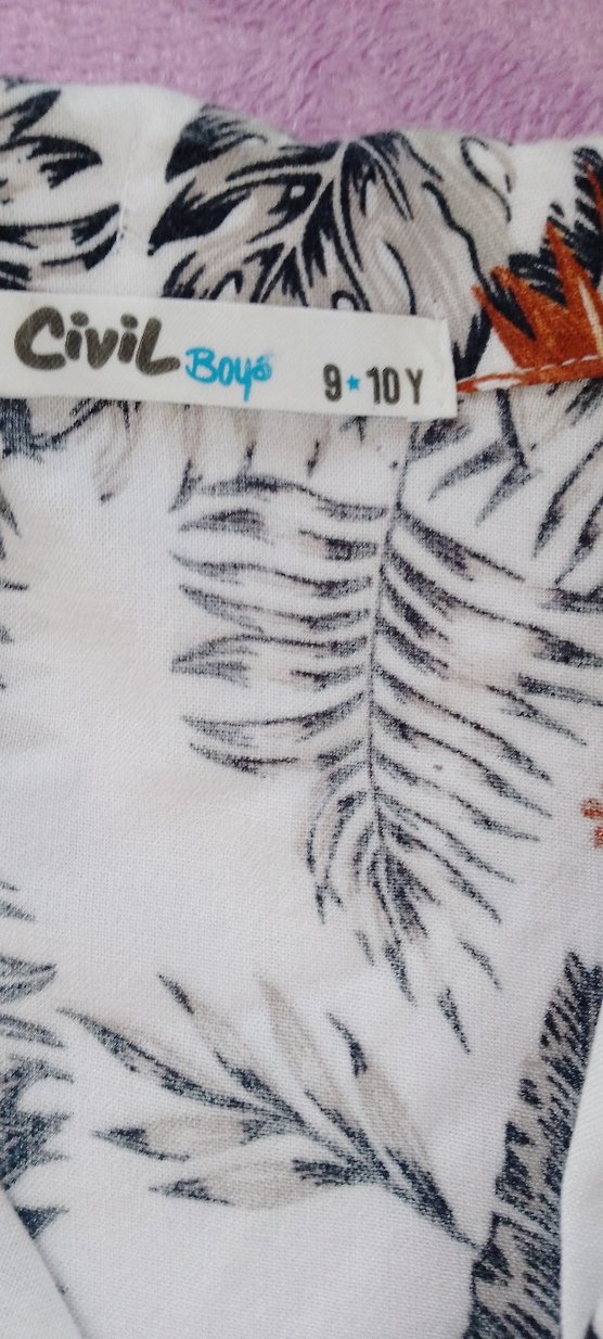 Gri renkte, 'Civil Boys' yazılı ve 9+10 yaş ölçülü erkek çocuk kumaş gömlek sadece bir kez kullanıldı